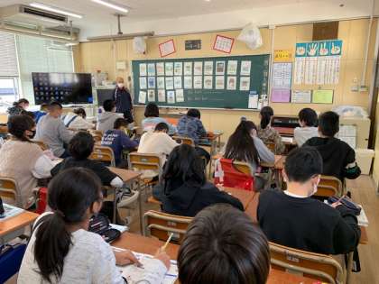 12月3日(木)4時間目、6年生は英語で「We have 〇〇.」「We don't have 〇〇.」の学習をしていました。
