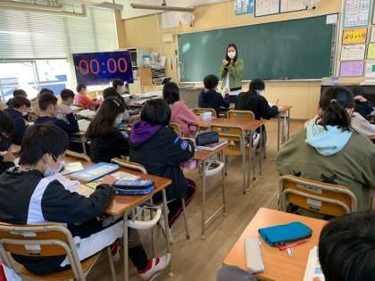 12月4日(金)1時間目、6年2組は国語で「ヒロシマのうた」の振り返りのところを学習していました。