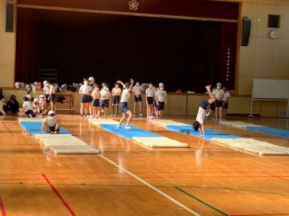 12月4日(金)4時間目、6年2組は体育でマット運動の連続技を練習していました。