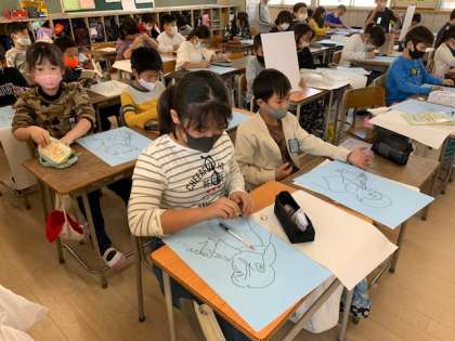 12月4日(金)5時間目、4年1組は図工で版画の下絵を描いていました。
