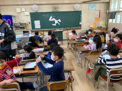12月10日(木)5時間目、2年2組は図工で「紙を自由に切っておもしろい形をつくろう」というめあてで、画用紙を切っていました。とても楽しそうでした。
