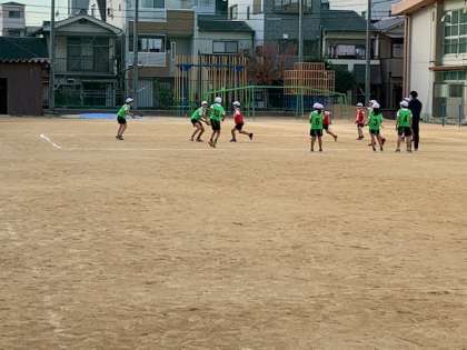 12月11日(金)6時間目、5年2組は運動場でタグラグビーをしていました。