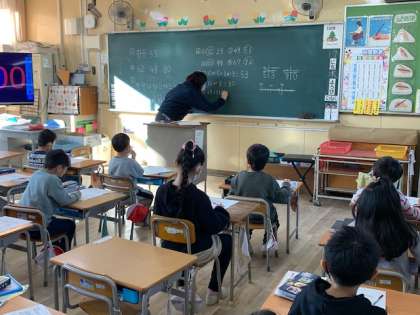 12月17日(木)1時間目、1年2組は算数でプリントを使って学習していました。