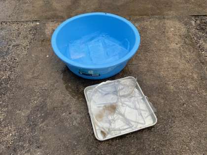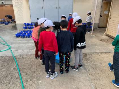 1月8日(金)今日はとても寒い朝です。昨日たらいに水をためて2か所に置いておきました。朝、氷が張っていました。最初に、3年生と5年生が反応しました。5年生では運動場の水たまりで氷ができているのを発見した子がいました。次に2年生がヒヤシンスを見に行った時に氷を発見し大騒ぎになりました。氷一つで子どもが興奮していました。実際に自然にできた氷を手で触り、厚さを確かめ、透き通ている具合に気付いたからですね。お家でも入れ物に水を入れて氷を作ってみるとおもしろいと思います。どこに入れ物を置いたらよいかを考え、試してみるのが学習です。