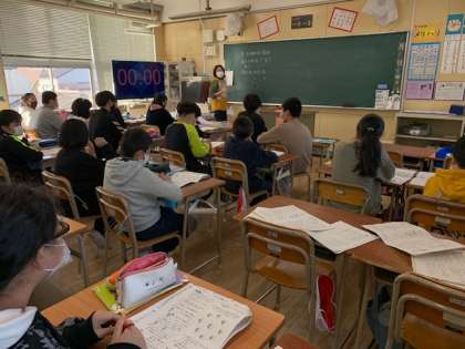 1月8日(金)1時間目、6年1組は理科でプリントの間違い直しをしていました。特に月の満ち欠けについて先生が話しておられました。