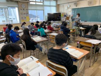 1月8日(金)1時間目、5年1組は国語で「古文のえがく四季」を学習していました。