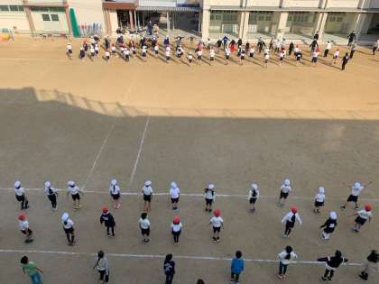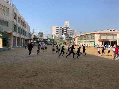 1月14日(木)20分休みに3・4年のかけ足がありました。ラジオ体操で準備運動をした後、ゆっくり歩くことからはじめ、徐々に走っていきました。中学年は5分間です。(低学年は4分間、高学年は6分間)