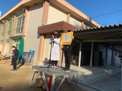 1月18日(月)児童朝会で健康委員会から手洗いのクイズがありました。続いて図書委員会から新しい本が入る話がありました。新しい本の中に「鬼滅の刃」の小説版がありますと言った時に、子どもたちからどよめきがおこりました。人気のある本には多くの人が借りにくることが予想されるので「鬼滅ルール」を作って対応するするそうです。