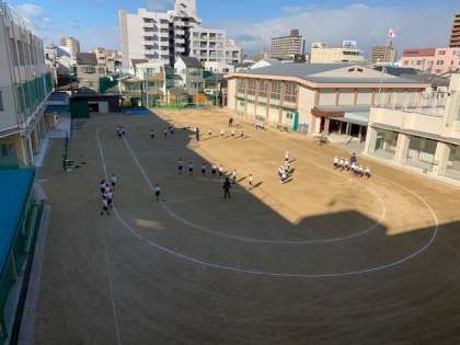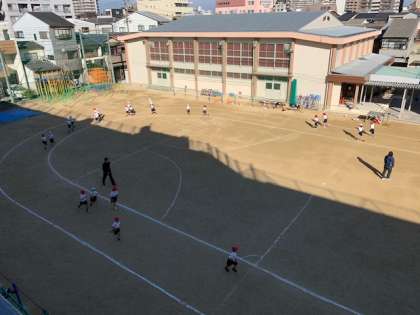 1月19日(火)2時間目、1年生は体育でした。運動場でかけ足をした後、ボールけりをしていました。子どもたちの熱気で寒さが吹き飛んでいくようです。