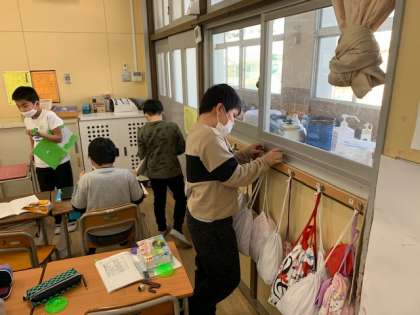 1月19日(火)2時間目、3年1組は理科で磁石の性質を調べていました。教室中のものに磁石をくっつけてみて、何がひっついたかを記録していました。