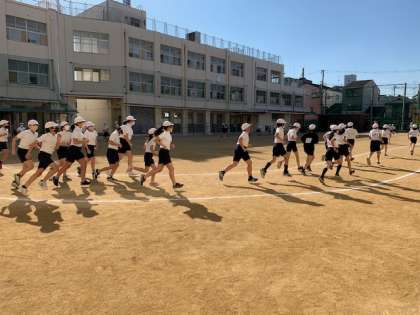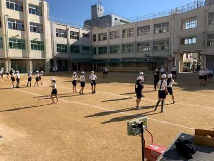 1月20日(水)6時間目、6年生は運動場で体育をしていました。最初は、かけ足です。次に小さなボールでキャッチボールを始めていました。野球型のゲームにつなげていくのでしょうね。