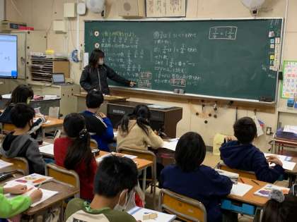 1月22日(金)1時間目、4年1組は算数で分数の仲間わけをしていました。「真分数」「仮分数」「帯分数」の意味が分かったかな?