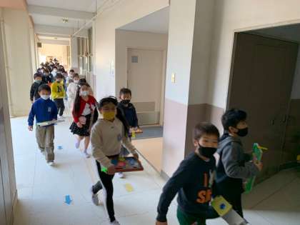 1月25日(月)1時間目、作品展を片づけている学年がありました。大事そうに作品を教室に運んでいました。