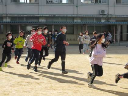 今日は業間に高学年が一生懸命に走っていました。