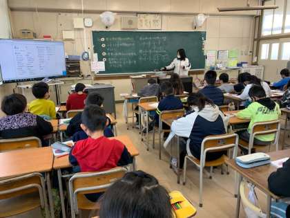1月29日(金)1時間目、4年1組は算数で帯分数の計算の仕方を考えていました。