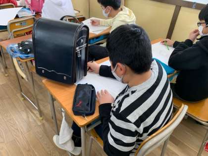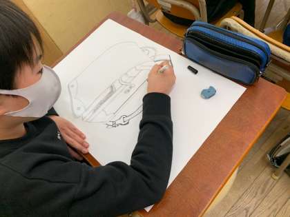 2月1日(月)3時間目、6年2組は図工でランドセルの絵を描いていました。子どもに聞きますと、6年間お世話になったランドセルを描き、そのまわりにメッセージを書いていくのだそうです。