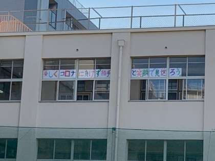 2月5日(金)もうこんな季節になったんですね。校舎に掲示物が出現しました。「ありがとう6年生の会」に向けてのものだと思われます。