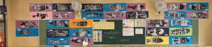 2月15日(月)3年1組の教室の掲示板に、このあいだから作っていた版画が並びました。なかなかよいできばえだと思います。