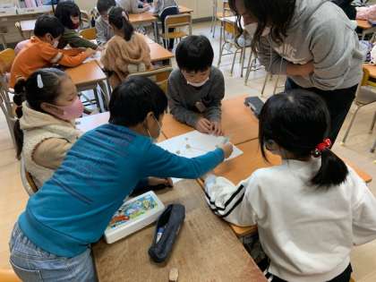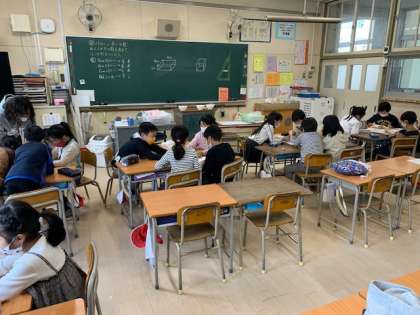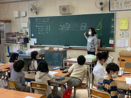 2月20日(土)1時間目、2年1組は算数ではこの形の特徴を調べていました。ストローと粘土で箱の形を作り、班でストローと粘土の数を確かめていました。