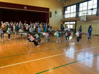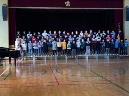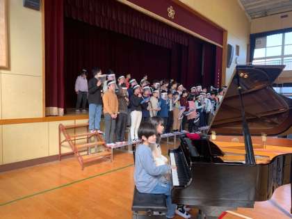 2月20日(土)2時間目、6年生は講堂で合唱と合奏をしました。全員で心を一つにして取り組んでいました。
