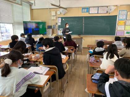 2月24日(水)4時間目、6年2組は算数で、「反対の性質の量の表し方を知ろう」というめあてで学習していました。子どもに聞きますと中学1年の内容だと言うので、教科書を見ると確かに「中学1年」と書いてありました。「負の数」の導入を6年生でしているようです。