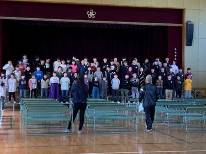 3月1日(月)3時間目、6年生は講堂ではじめての卒業式練習を行いました。卒業式の心得の他、座り方を教わり、ひな壇での場所決めを行っていました。卒業式に向けていよいよカウントダウンが始まるという感じです。