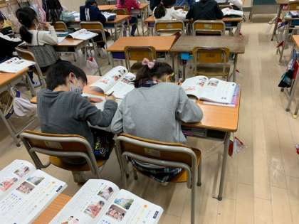 3月2日(火)5時間目、2年1組は国語で「すきな場しょをつたえよう」の学習をしていました。「すきな場所」について子どもたちは2年1組の教室と答えている子もいました。ワークシートに書き込んでいました。