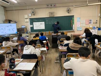 3月2日(火)5時間目、5年2組は算数で角柱について調べていました。