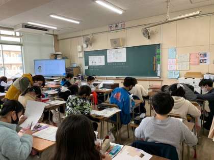 3月9日(火)5時間目、5年2組は算数で円柱の学習をしていました。円柱の展開図を書いて、切り取って円柱になるか確かめていました。