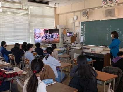 3月11日(木)児童集会はテレビを使って、ダンスクラブの発表と5年生の合奏の発表がありました。みんな真剣に見ていました。