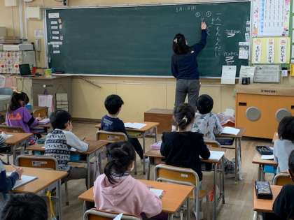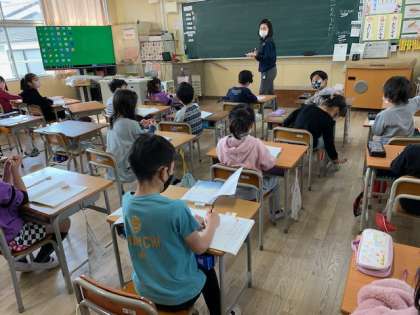 3月11日(木)4時間目、1年1組は国語で「一人一もんだい」をしていました。漢字やカタカナを使って書く言葉や文を子どもたちから問題を出し、一人一人がノートに書くということをしていました。
