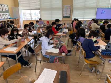 3月11日(木)4時間目、3年1組は、社会科で昔の道具を調べていました。パソコンを使って調べていました。昭和30年ごろのテレビを調べている子がいて、思わず、「校長先生の子どもの頃こんなテレビが家にあって、見ない時は画面にカーテンがしてあってんで。」と言ってしまいました。パソコンで調べるのもいいですが、おじいちゃんやおばあちゃんに聞いてみるのもおもしろいかもしれませんね。