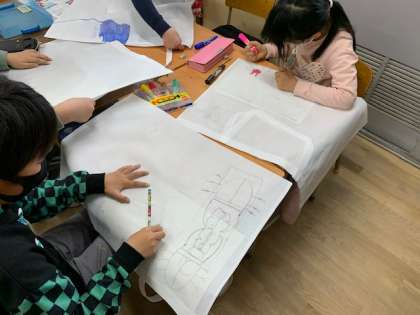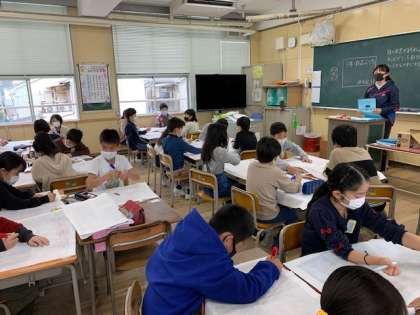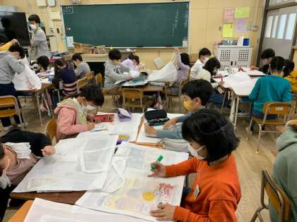 3月13日(土)1時間目、3年1組も2組も作品袋を作っていました。