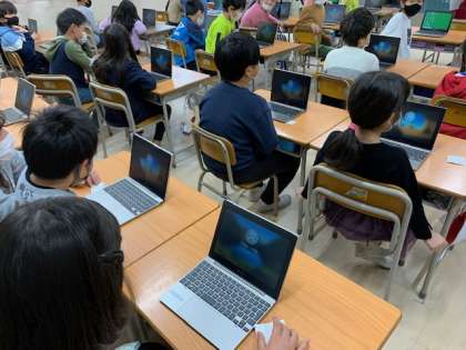 3月13日(土)2時間目、2年生は1組も2組もっ一人一台のパソコンの使い方を学習していました。IDとパスワードの入力の仕方から練習していました。このパソコンを使うのは初めてで、とっても楽しみという子がいました。