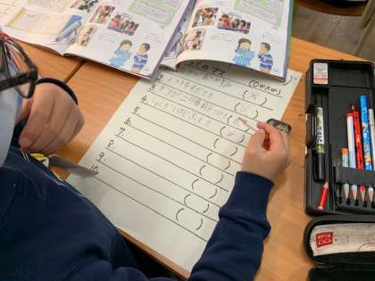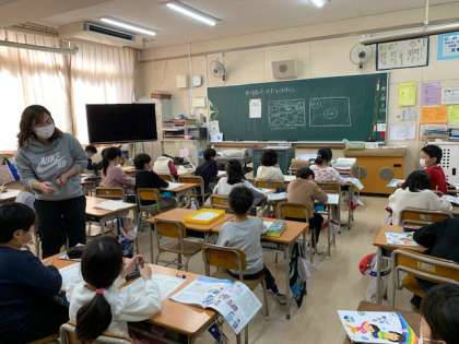 3月15日(月)2時間目、2年1組は生活科で、「1年間の思い出すごろくを作ろう」というめあてで学習していました。子どもたちはプリントにこの1年何があったかを思い出して書いていました。さらにそのできごとに〇や×をつけていました。「コロナで学校が休みになった」を書いているひとが何人かいました。そして×をつけていました。