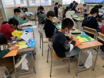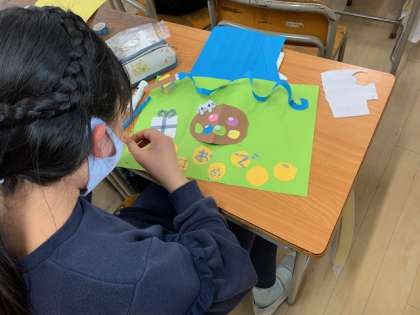 3月9日(火)5時間目、4年1組はハッピーカードを作っていました。一人一人の思いのこもった作品ができてきていました。