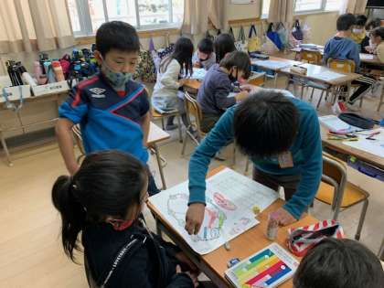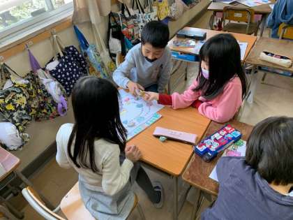 3月17日(水)6時間目、2年1組は生活科で思い出すごろくを作って遊んでいました。この一年を思い出しながら楽しんでいました。