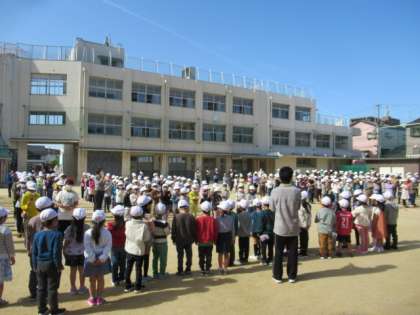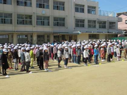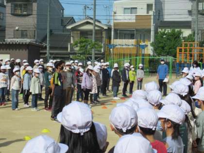 1年生との対面式が運動場で行われました。