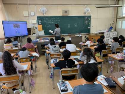 4月12日(月)2時間目、2年1組は算数で「メダルのかずをかざりのかたちでわけてせいりしよう」という学習をしていました。
