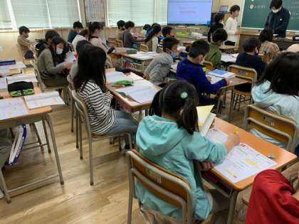4月13日(火)1時間目、5年2組は算数で「整数と小数のしくみ」をドリルで学習していました。