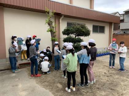 4月14日(水)5時間目、4年2組は理科で「小学校の生き物のようすを調べよう」という学習で、講堂入り口横のイチョウの木を観察していました。夏や秋の様子と比較できるといいですね。