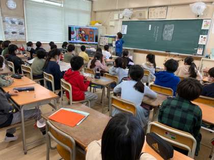 4月16日(金)朝の時間に、4年1組は英語タイムで英語の歌の動画を見ていました。歌の中に英語で楽器の名前が出てきていました。みんないくつわかったかな?