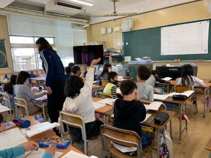 4月16日(金)1時間目、3年1組も2組と同じく国語で「くらべてみよう」を学習していました。教科書にのっている遊び以外を考えて発表していました。