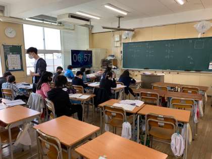 4月16日(金)1時間目、6年2組は算数で学級を2分割して学習していました。「たしかめポイント」という復習問題をしていました。