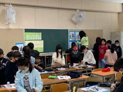 4月19日(月)2時間目、5年2組は書写で「道」を書き、自分達で掲示も始めていました。