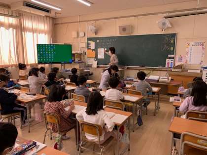 4月20日(火)1時間目、2年1組は算数で34+25を筆算でする方法を考えていました。