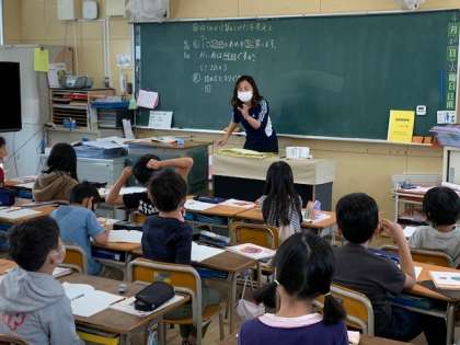4月20日(火)1時間目、3年1組は算数で「何十のかけ算のしかたを考えよう」というめあてで学習していました。どんなふうに考えたらできるかを子どもたちから意見を聞いているところでした。
