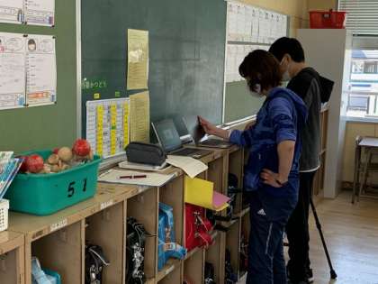 4月20日(火)緊急事態宣言発出でオンライン授業をする可能性も出てきました。子どもたちは一人一台のパソコンを使って学習を始めていますが、オンライン学習で使うには設定と確認が必要です。子どもたちが授業を受けている後ろで一台ずつパソコンを設定をし確かめています。2時間で5台しか設定できなかったという報告も聞いています。子どもたちが混乱なく使えるために地道に作業を続けています。