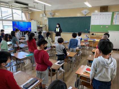 4月26日(月)3時間目、1年1組は国語で「とん とん とととん はじめるよ」を全員で声に出して読んでいました。