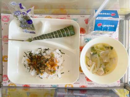 【きんぴらちらし、牛乳、すまし汁、ちまき】